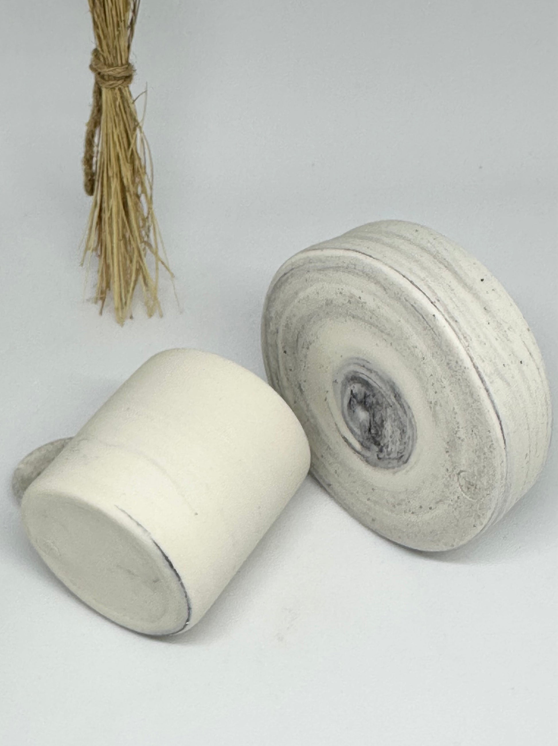 Det er den bildet viser. Her en espressokopp og en lysholder.